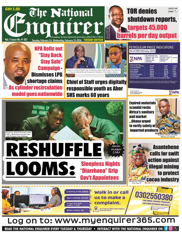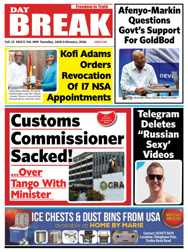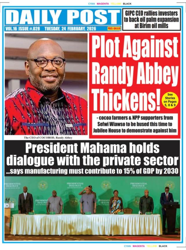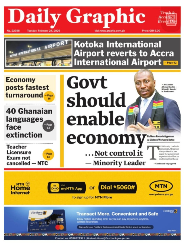 We look at stories on the front pages of Ghanaian newspaper publications for Tuesday, 24th February, 2026