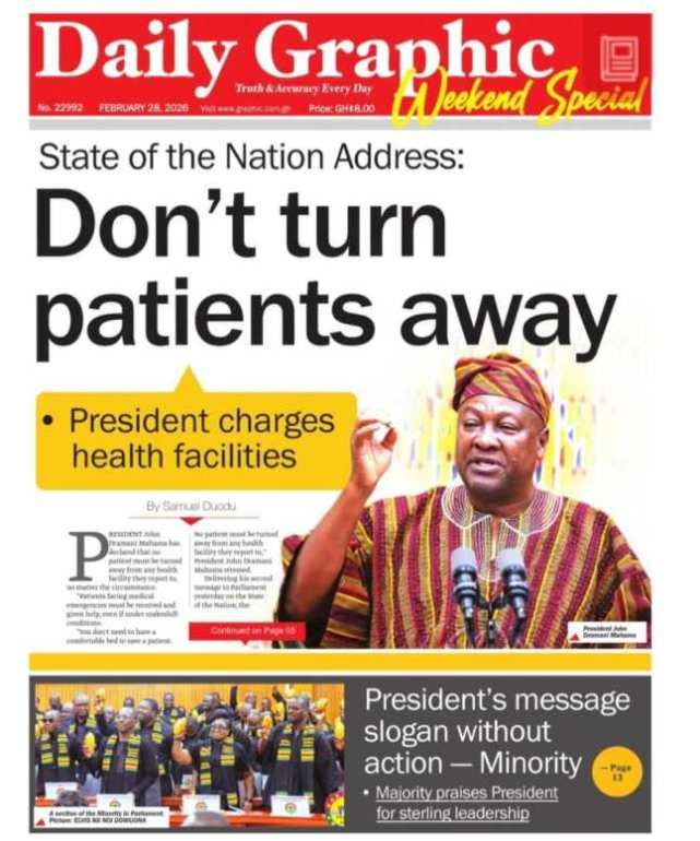 We at Thenewsbulletin24.com look at stories making headlines on the front pages of newspaper publications for Saturday, 28th February, 2026