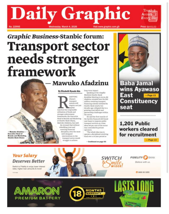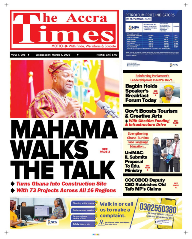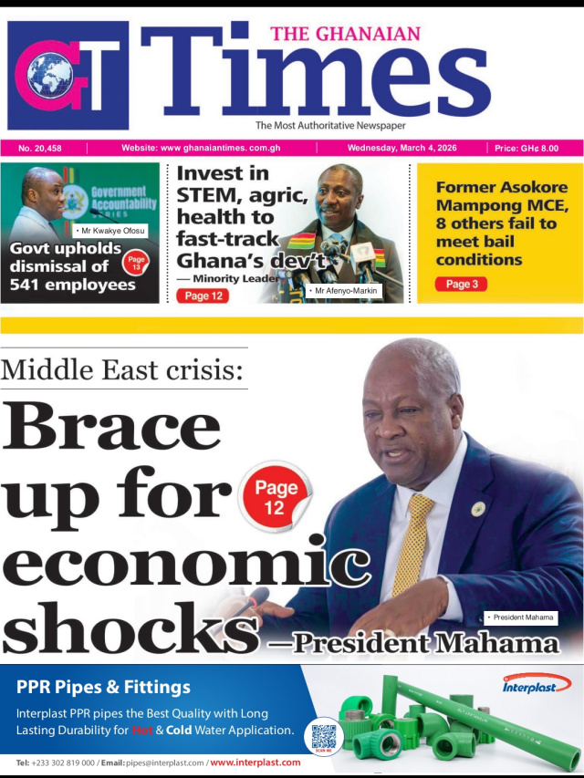 We look at stories on the front pages of Ghanaian newspaper publications for Wednesday, 4th March, 2026