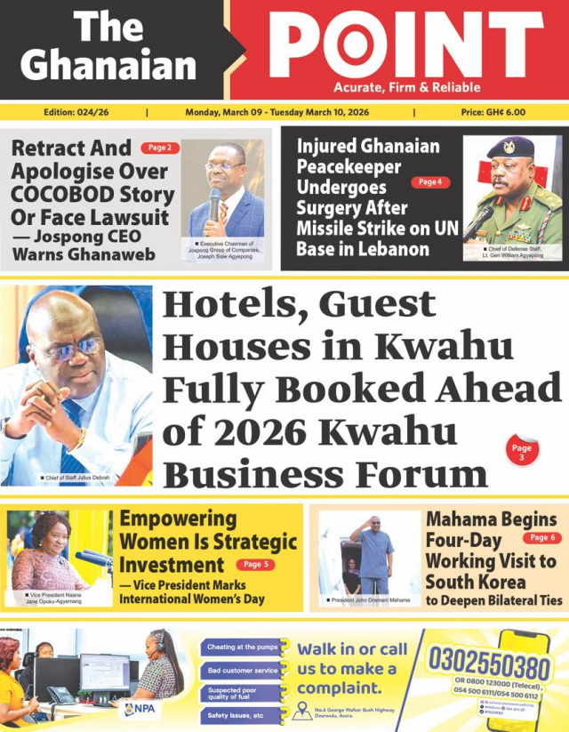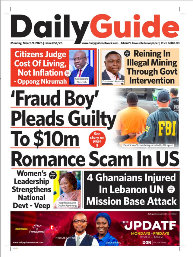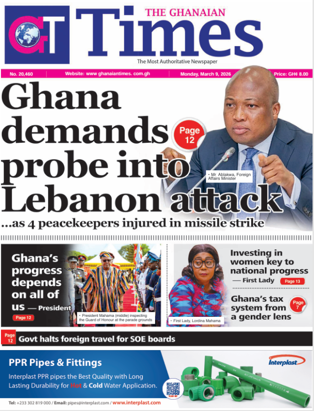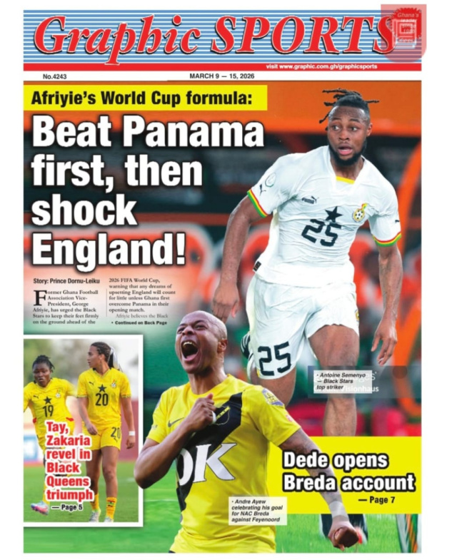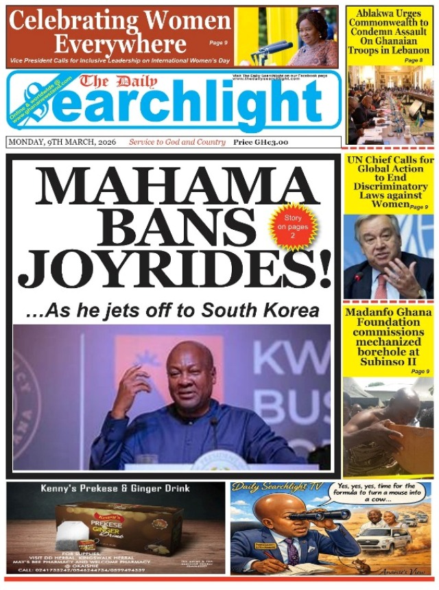 We look at stories on the front pages of Ghanaian newspaper publications for Monday, 9th March, 2026