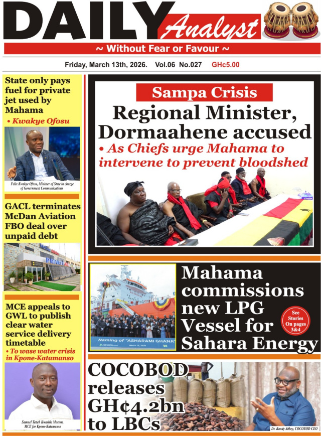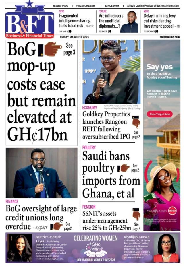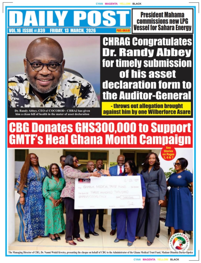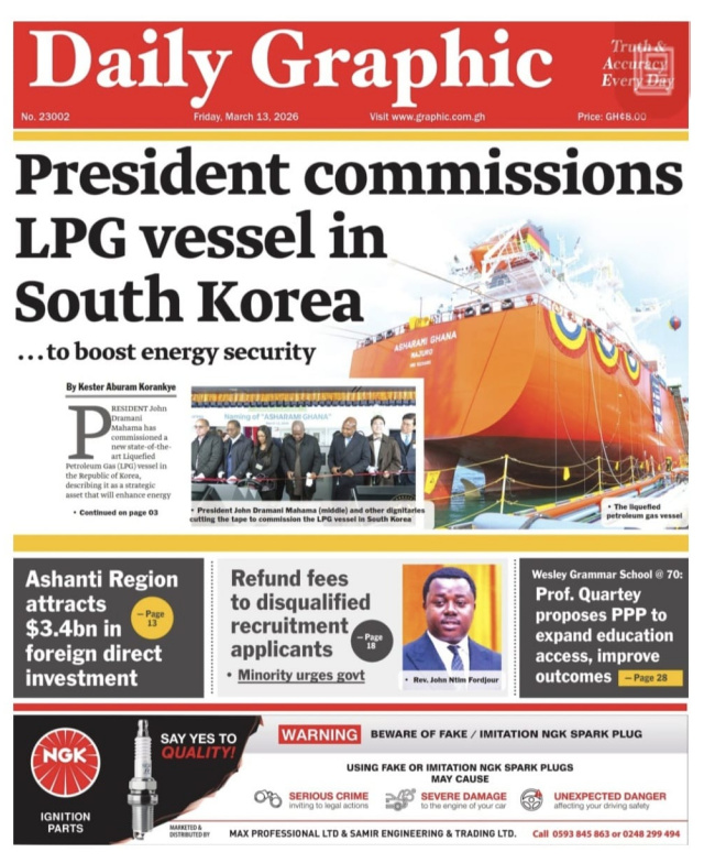 We look at stories on the front pages of Ghanaian newspaper publications for Friday, 13th March, 2026