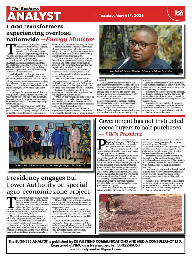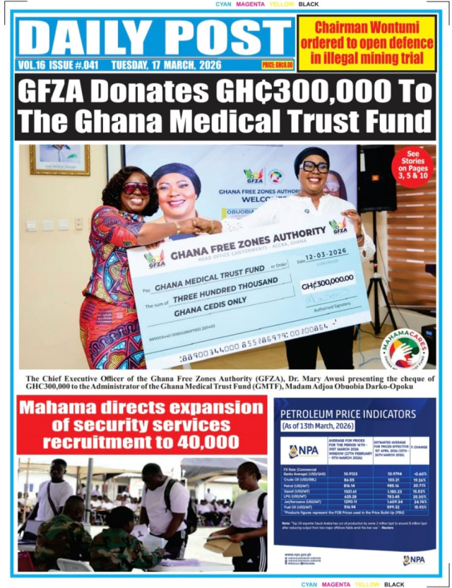 We look at stories on the front pages of Ghanaian newspaper publications for Tuesday, 17th March, 2026