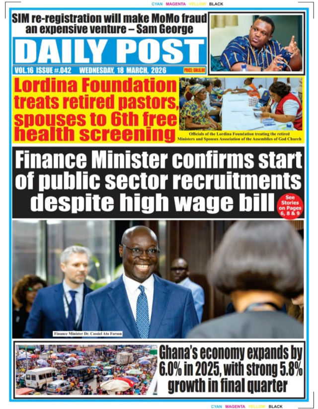 We look at stories on the front pages of Ghanaian newspaper publications for Wednesday, 18th March, 2026