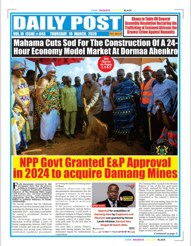 We look at stories on the front pages of Ghanaian newspaper publications for Thursday, 19th March, 2026