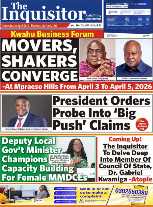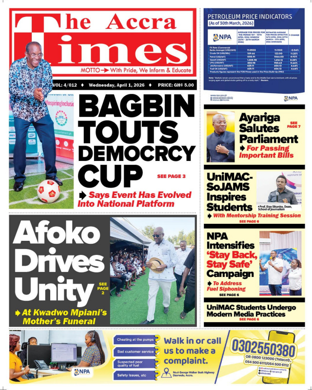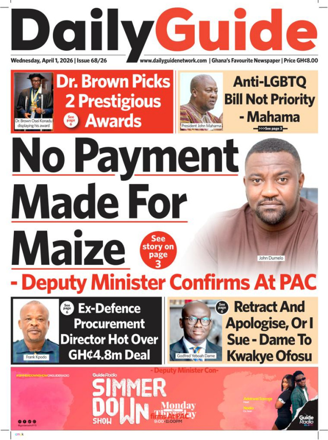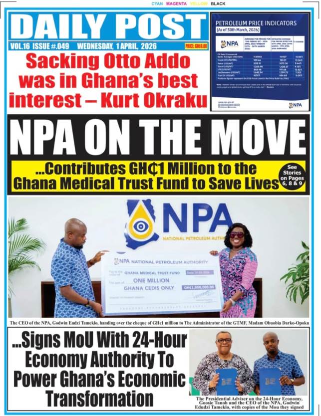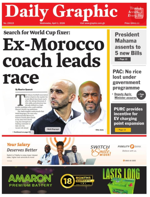 We look at stories on the front pages of Ghanaian newspaper publications for Wednesday, 1st April, 2026