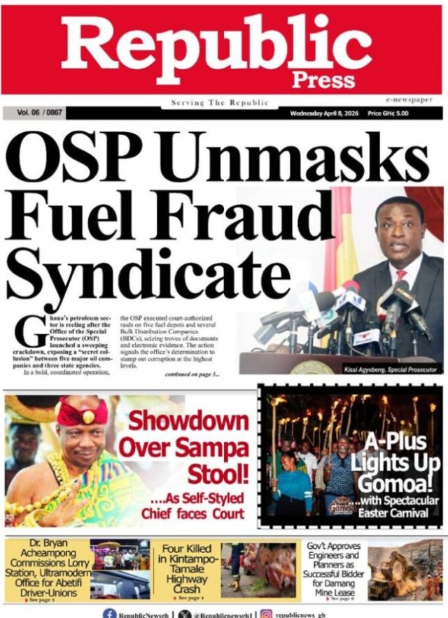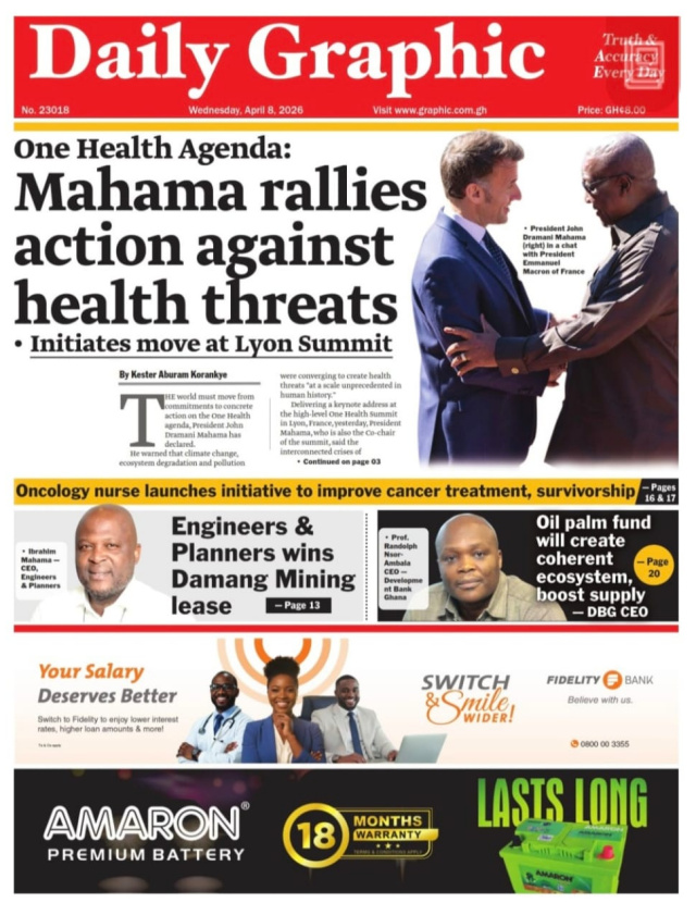 We look at stories on the front pages of Ghanaian newspaper publications for Wednesday, 8th April, 2026