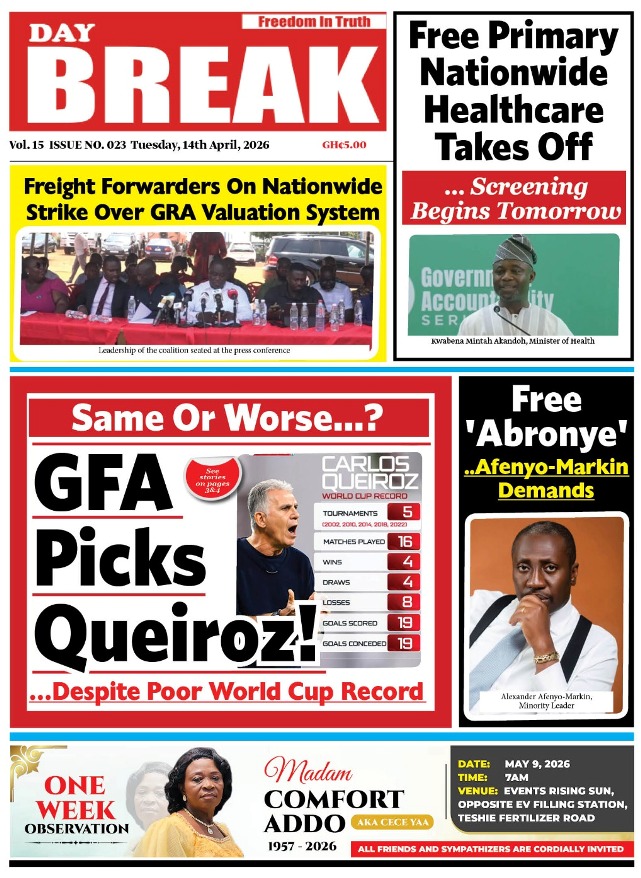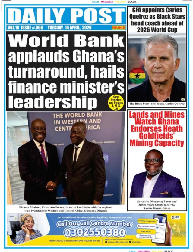We look at stories on the front pages of Ghanaian newspaper publications for Tuesday, 14th April, 2026