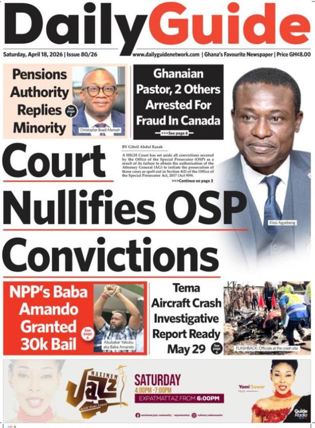 We look at stories on the front pages of Ghanaian newspaper publications for Saturday