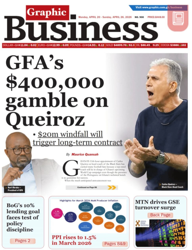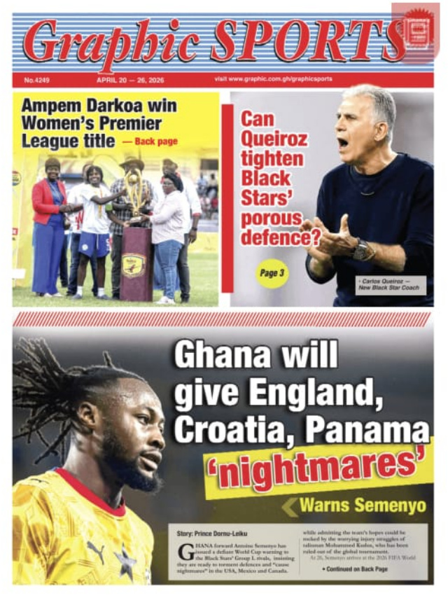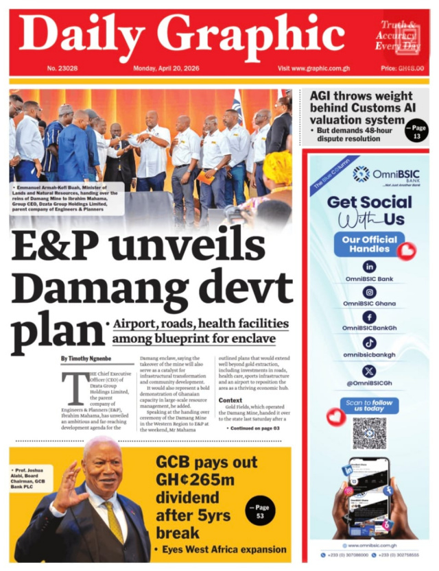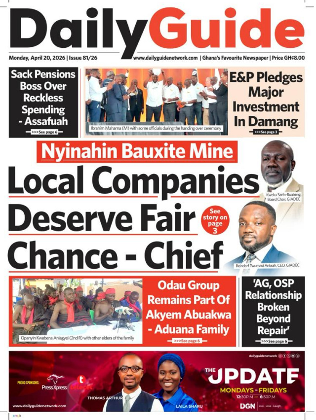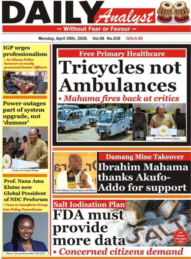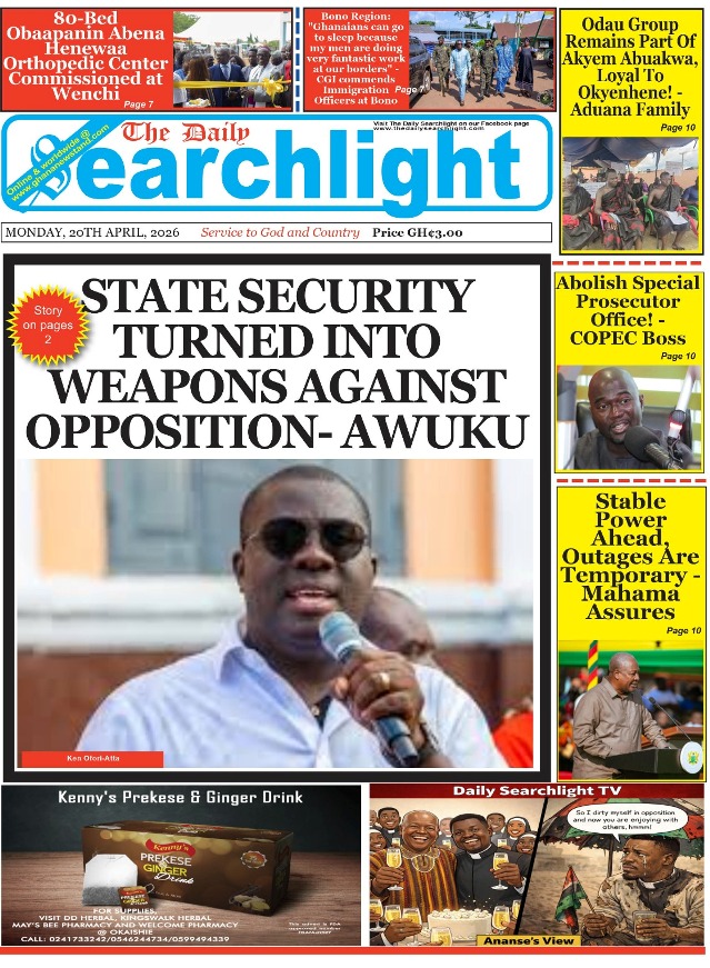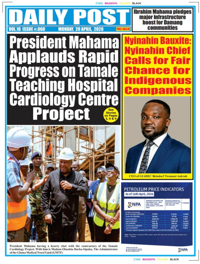 We look at stories on the front pages of Ghanaian newspaper publications for Monday, 20th April, 2026