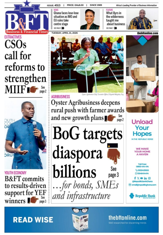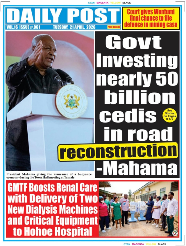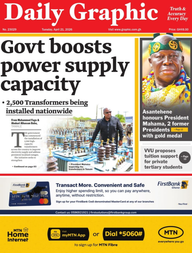 We look at stories on the front pages of Ghanaian newspaper publications for Tuesday, 21st April, 2026