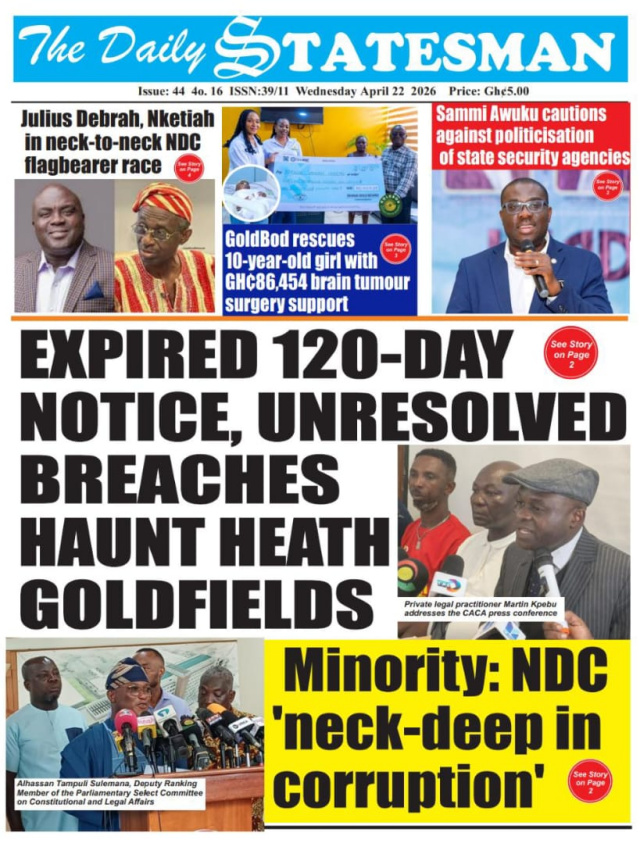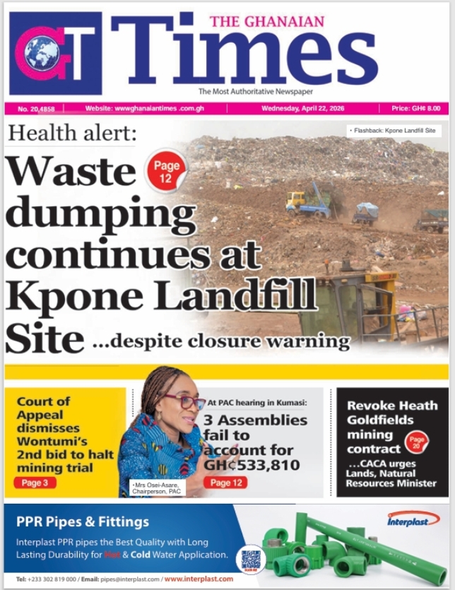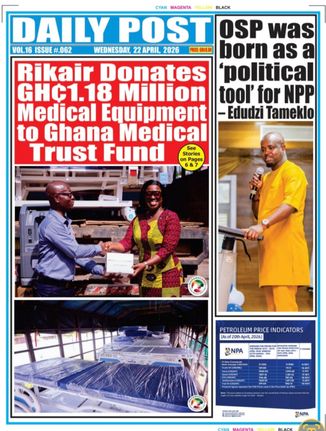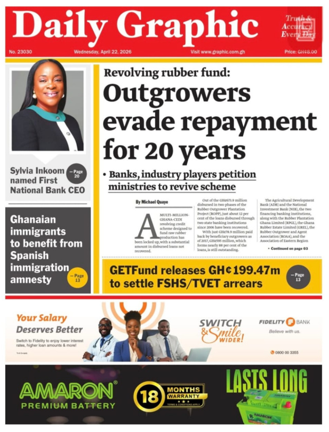 We look at stories on the front pages of Ghanaian newspaper publications for Wednesday, 22nd April, 2026