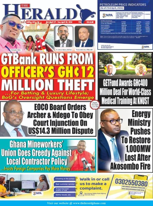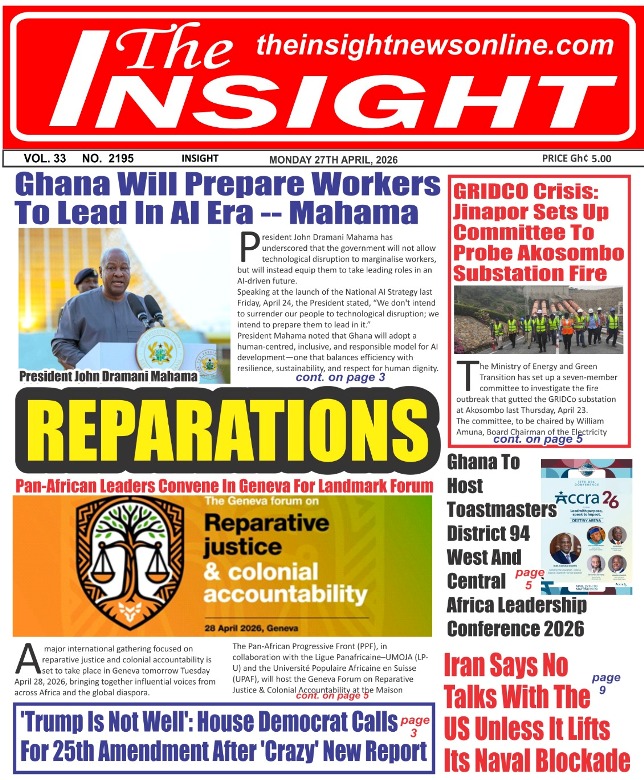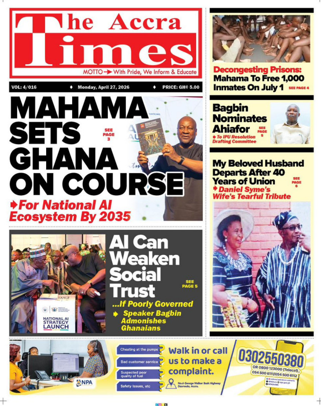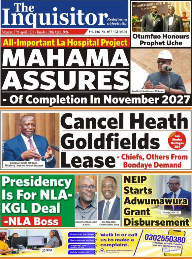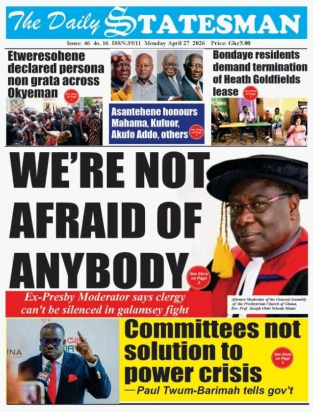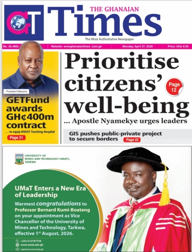 We look at stories on the front pages of Ghanaian newspaper publications for Monday, 27th April, 2026